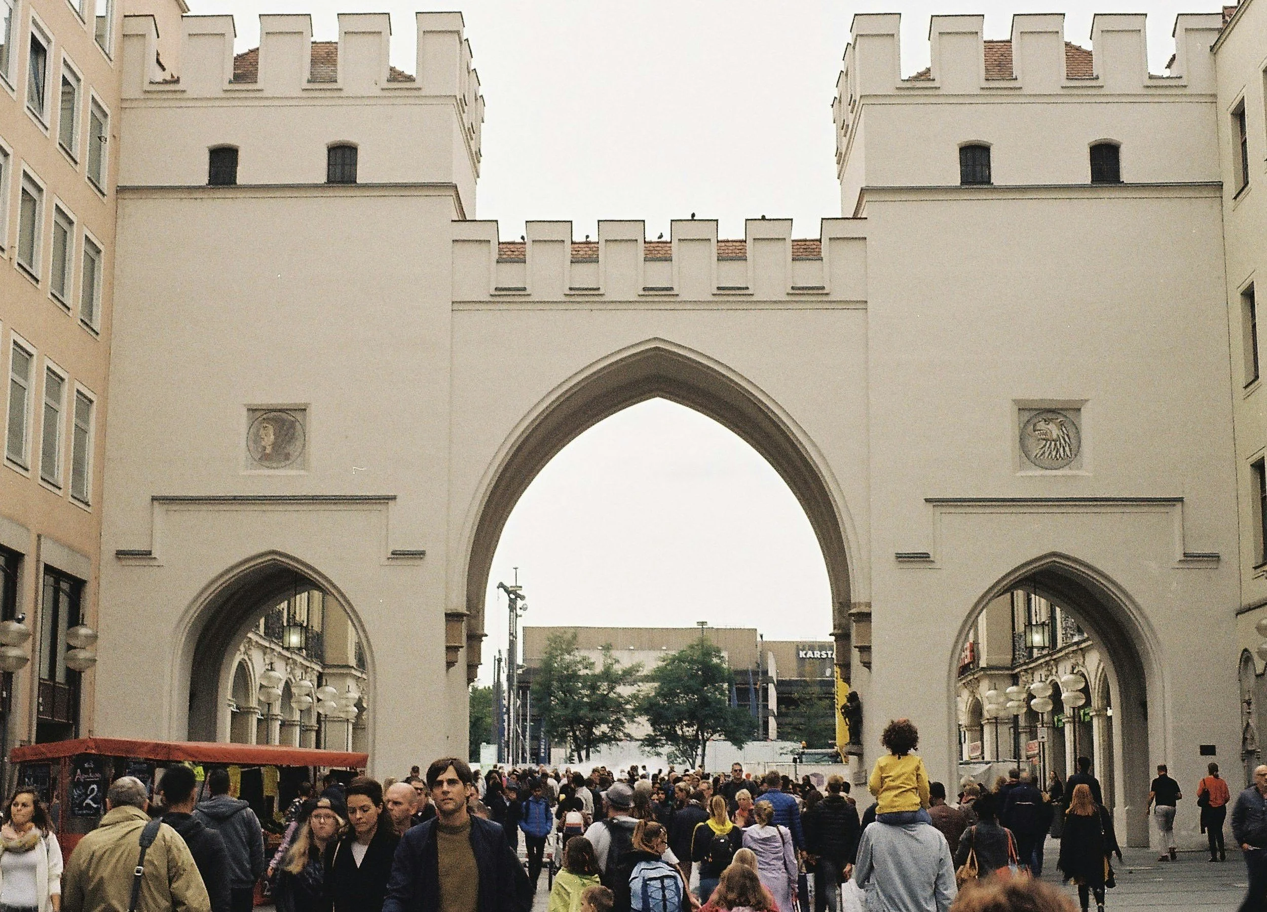 Between Starbucks and McDonald's, just steps from the Karlstor gate.
